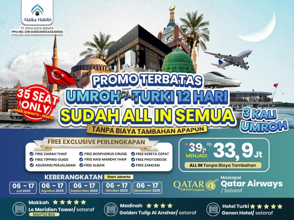 - Hotel Turki Sekamar Ber-2/3 (Sesuai paket yang dipilih)