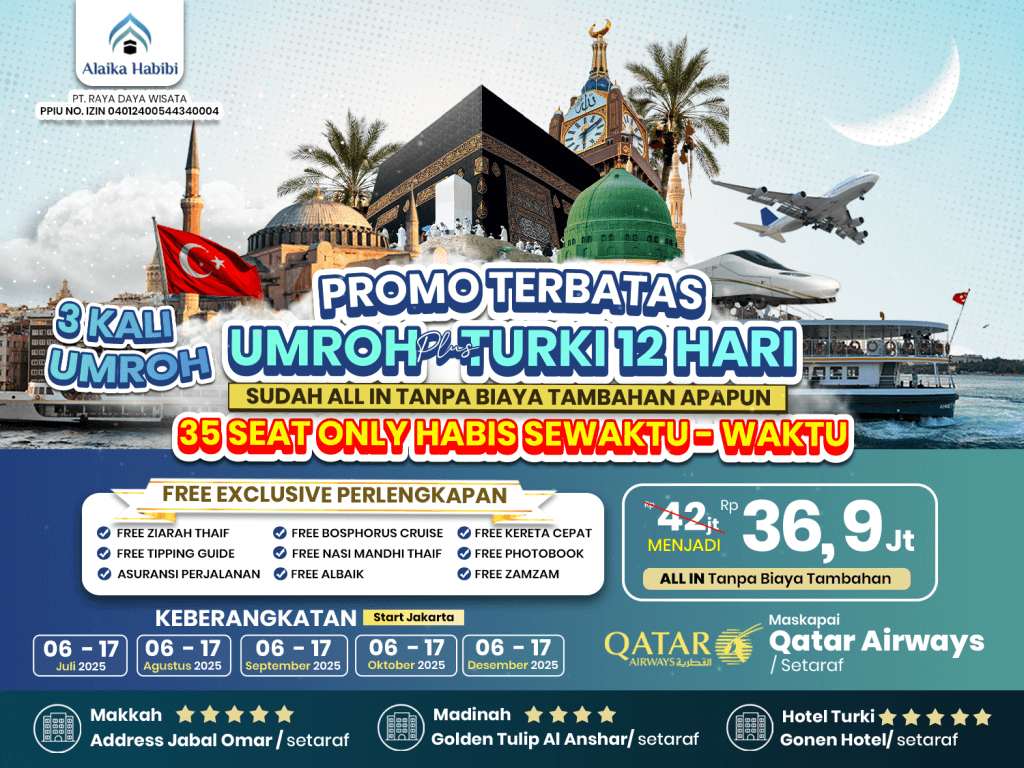 - Hotel Turki Sekamar Ber-2/3 (Sesuai paket yang dipilih)