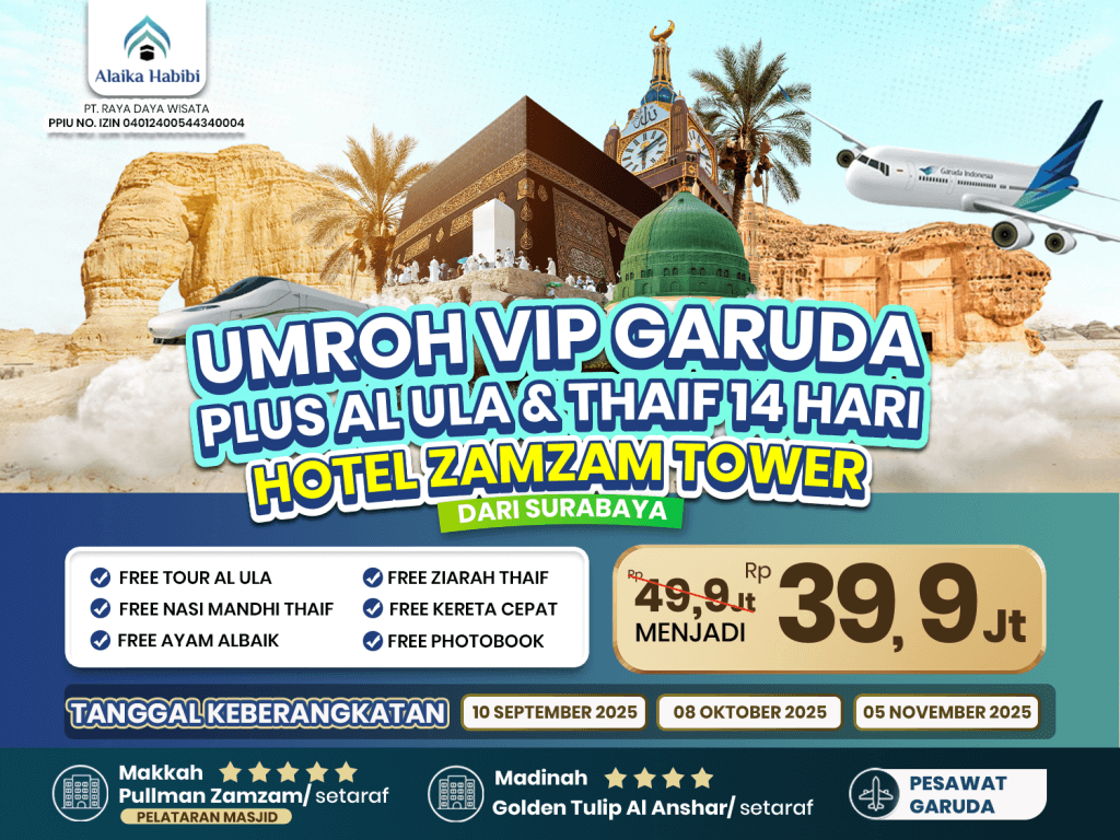 UMROH GARUDA Plus Al Ula & Thaif 14 Hari (PULLMAN Zamzam)