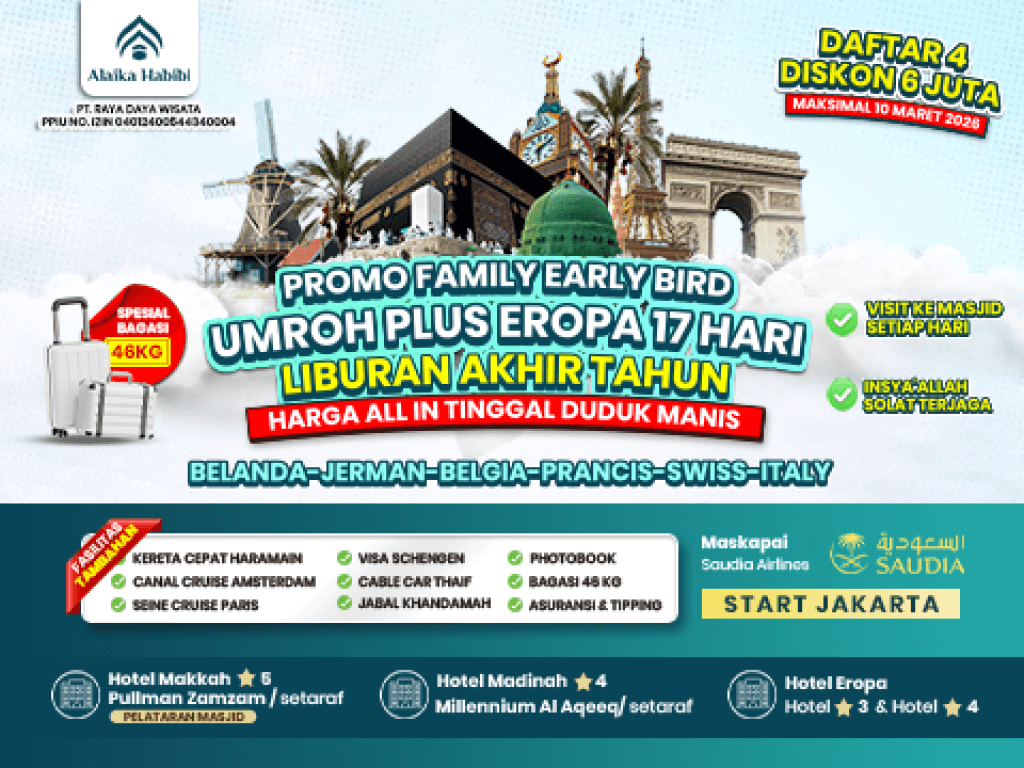 UMROH PLUS EROPA 17 Hari (Belanda-Jerman-Belgia-Prancis-Swiss-Italy)