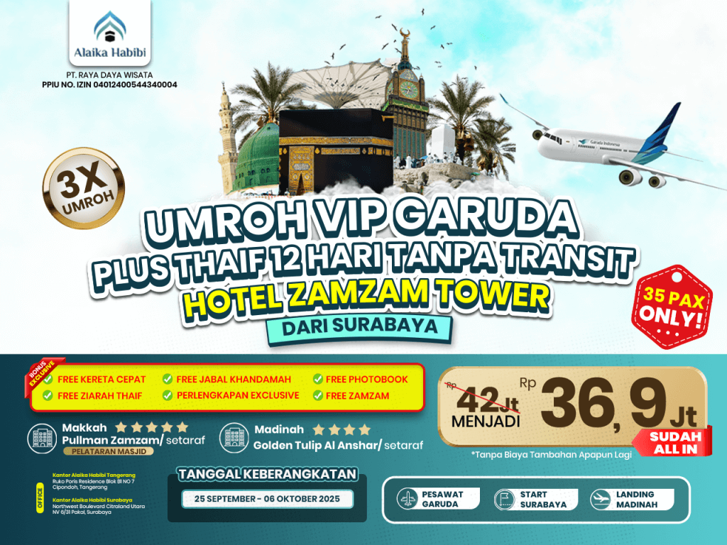Umroh VIP Garuda Plus Thaif 12D Pullman Zamzam START Surabaya